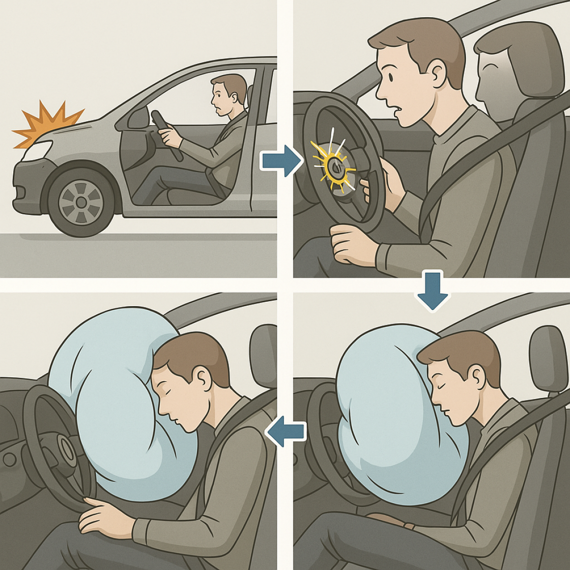 Весь процесс от обнаружения удара до надувания подушки безопасности занимает доли секунды, что позволяет существенно снизить риск травм при аварии.