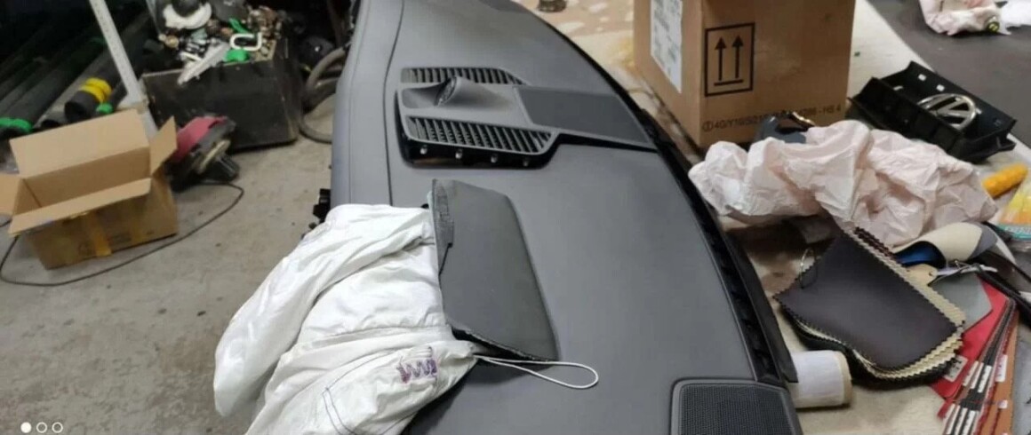 4. Перетяжка торпеды (обычно используется экокожа или материал, имитирующий заводскую отделку).