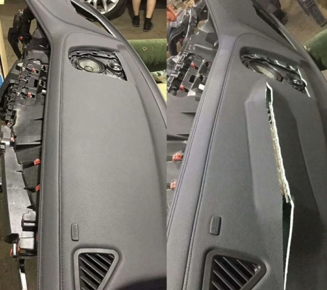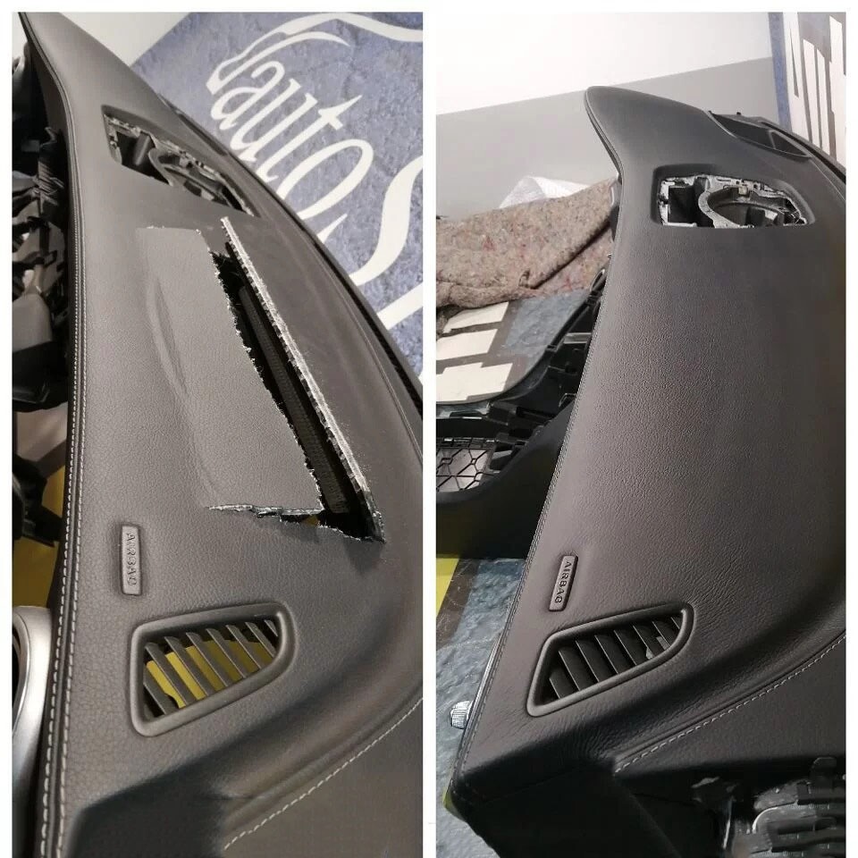 3. Срабатывание подушки безопасности:Если при аварии сработала подушка безопасности, она, как правило, рвёт обшивку торпеды, после чего её восстановление возможно далеко не всегда. В некоторых автомобилях предусмотрены съемные крышки для airbag, но чаще — панель подлежит замене.